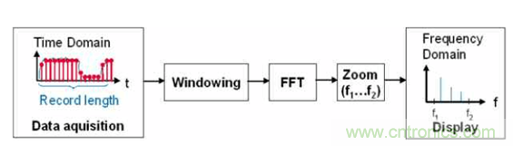 我們總想著對采下來的數(shù)據(jù)做更多的處理,示波器更準(zhǔn)確的理解,它更像一個波形分析儀正是工程師的不滿足,才有我們不斷追求推動極限的動力,因為我們經(jīng)常低估我們的潛力,極限到底在哪? 到底是誰最先把FFT(快速傅里葉變換)用在數(shù)字示波器里邊呢,說法很多。好像突然間,大家在示波器上都發(fā)現(xiàn)有FFT 功能了,而且都是標(biāo)準(zhǔn)配置,雖然都有這個功能,但是做成的結(jié)果千差萬別,速度和指標(biāo)也都各不相同,任何事情開始階段都相同,都先追求有,再談差異化。況且示波器本身是個定性的工具,誰又在乎示波器在頻域上的指標(biāo)精度呢,除了我們可愛的研發(fā)工程師。情況在變化,很多時候用戶希望通過一個儀器來解決所有問題,因為說實話,很多工程師沒有條件在桌上擺上電位計,頻譜儀,示波器,矢網(wǎng)。多數(shù)情況,示波器把采集下來的時域數(shù)據(jù)樣本,進行軟件fft 運算,變成頻域的樣本,再通過數(shù)據(jù)重組,把頻域的樣本顯示出來。