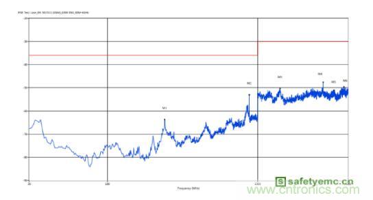 圖2 調(diào)試前傳導(dǎo)輻射測試結(jié)果