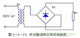 通常情況下橋式整流電路都簡(jiǎn)化成圖2-3-17的形式