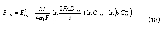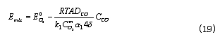 此式給出了CO濃度和混合電勢的線性關(guān)系。