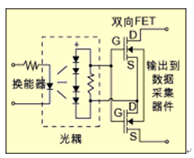 雙向FET器件是以一種叫做雙向FET輸出的結(jié)構(gòu)實(shí)現(xiàn)的,如圖3所示。該結(jié)構(gòu)有許多優(yōu)點(diǎn),但最重要的是它能夠直接與TTL和 CMOS電路接口,而且它具有關(guān)態(tài)泄漏電流低和響應(yīng)速度快的特性。FET的意思是場效應(yīng)晶體管,它是一種最適合于用作數(shù)字傳感器輸出的器件,因?yàn)槠涔ぷ魈?性接近理想模型。