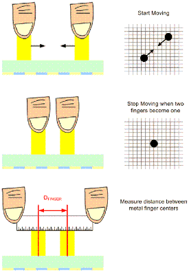 手指間距:手指間距定義為,當(dāng)觸摸屏控制器測(cè)量?jī)芍皇种傅奈恢脮r(shí),兩只手指中心點(diǎn)之間在屏幕上的最短距離。手指間距測(cè)量方法(圖2),是將兩個(gè)模擬或機(jī)械手指置于面板上,然后逐漸拉近兩只手指的距離,直到系統(tǒng)測(cè)到兩只手指為一只手指為止。有些觸摸屏供貨商的手指間距是指邊緣至邊緣的距離,有些則是中心點(diǎn)之間的距離。10毫米機(jī)械手指的10毫米手指間距,表明有多只手指觸碰到屏幕,或是手指之間的距離為10毫米,實(shí)際狀況取決于觸控控制器的規(guī)格定義。如果沒有良好的手指間距,就無法設(shè)計(jì)出多點(diǎn)觸控解決方案。對(duì)于仿真鍵盤而言,手指間距尤其重要,因?yàn)橐话阍谑褂梅抡骀I盤時(shí),手指在屏幕上的間距通常很短。