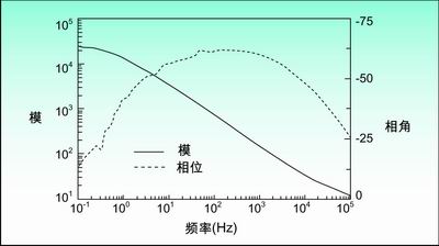 盡管奈奎斯曲線很常用,但是它不能給出頻率信息,所以對(duì)于任何特定阻抗,都不可能知道采用的頻率值是多少。因此,奈奎斯曲線通常要采用其它曲線來補(bǔ)充。另外一種常用的表示方法就是波特(Bode)圖。在波特圖中,x軸表示頻率的對(duì)數(shù),阻抗的幅度絕對(duì)值|Z|和相移都用y軸表示。因此波特圖同時(shí)表示了阻抗與頻率和相移與頻率的關(guān)系。通常將奈奎斯曲線和波特圖一起使用來分析傳感器元件的傳遞函數(shù)。
