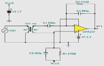 圖6 使用OPA337的電路TINA-TI模型