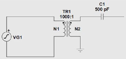 最后,如果這種生成器需要代表實際物理信號,則可以使用變壓器,如圖2所示。本例中,我們建模了一個具有0.5pC/g靈敏度和500pF寄生電容的生成器。正弦波生成器每單位g輸出1V以實現(xiàn)仿真。變壓器在其次級線圈將它向下調(diào)節(jié)至 1mV.施加給C1(500 pF)的1mV擺動,將會如我們預(yù)計的那樣在下一級注入 Q = VC = 0.5 pC.