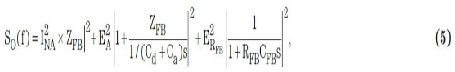 且s = 2πfj.方程式5為電荷放大器的經(jīng)典噪聲解決方案。相對于Cd,Ca一般非常小。因此,方程式5可以簡化為: