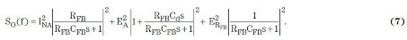 在第三項中,如果RFB = 540MΩ,則這一項對輸出噪聲的貢獻(xiàn)值約為3 μV/√HZ /5.85=510 nV / √HZ .