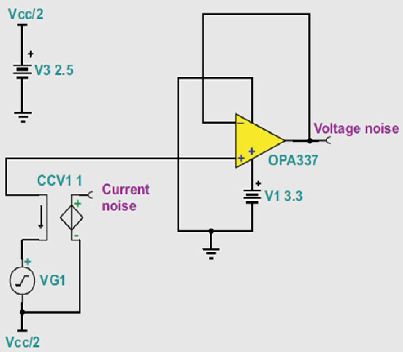 圖5 OPA337的輸入電壓和輸入電流噪聲