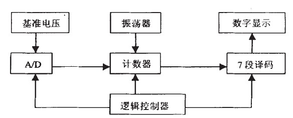 放大后的模擬電壓經(jīng)過(guò)A/D轉(zhuǎn)換器實(shí)現(xiàn)模擬量到數(shù)字量的轉(zhuǎn)換。A/D轉(zhuǎn)換結(jié)果通過(guò)計(jì)數(shù)譯碼電路變換成7段譯碼, 最后驅(qū)動(dòng)顯示出相應(yīng)的數(shù)值, 傳感器驅(qū)動(dòng)顯示電路方框圖如圖6所示。