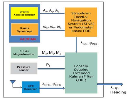 當(dāng)天線沒有被遮擋時,現(xiàn)代的GPS接收器的絕對定位精度是3米到20米,這個參數(shù)不會在一段時期后發(fā)生漂移?;贛EMS傳感器的捷聯(lián)式慣性導(dǎo)航系統(tǒng)(SINS) 可在很短的時間內(nèi)提供精確的定位信息,但是,根據(jù)運(yùn)動傳感器的性能,這種導(dǎo)航系統(tǒng)在使用一段時間后很快就會發(fā)生精度漂移現(xiàn)象。行人航位推算系統(tǒng)(PDR)是一個根據(jù)步長和方位計算從室內(nèi)已知初始位置開始的行走距離的相對導(dǎo)航系統(tǒng),雖然定位精度不會隨時間推移而發(fā)生漂移,但是需要在受磁力干擾的環(huán)境內(nèi)保持航向精度,此外,GPS需要對步長進(jìn)行校準(zhǔn),才能達(dá)到可以接受的定位精度。