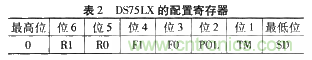 DS75LX的配置寄存器如表2所示,該寄存器可讀/寫,允許用戶選擇不同功能。這些功能包括報警輸出類型、溫度測量分辨率等。