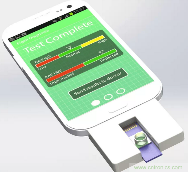 igen Lifescience團(tuán)隊由斯坦福大學(xué)4名學(xué)生和2名顧問組成,利用一年時間研發(fā)出一款微型設(shè)備,在不到10分鐘的時間內(nèi)就能測試出患者是否患有乙型肝炎。該設(shè)備主要利用智能手機(jī)的微處理器,成本低廉,易于攜帶。這款設(shè)備主要針對醫(yī)療資源緊張的發(fā)展中國家而設(shè)計,能夠快速確定需要優(yōu)先治療的患者。將來,該設(shè)備的檢測范圍可能得到進(jìn)一步拓展,如檢測HIV或心臟病等。
