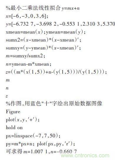 由于按照最小二乘法的基本步驟進(jìn)行擬合的計(jì)算量比較大,所以本文采用Matlab進(jìn)行數(shù)據(jù)處理,這樣不但可以減少?gòu)?fù)雜的計(jì)算過(guò)程,而且還可以保證較高的計(jì)算精度。