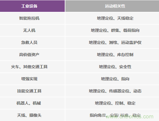 多數(shù)情況下,物聯(lián)網(wǎng)都處于運動狀態(tài)。即使不處于運動狀態(tài)——比如,靜止的工業(yè)安全攝像頭——精密指向仍可能必不可少,或者,關(guān)于無用運動(篡改)的知識也可能非常有價值。如果能在惡劣的飛行條件下維持精確的指向角度,用光學(xué)載荷捕捉作物圖像的無人機就有可能更快地帶來更好的結(jié)果;如果能為光學(xué)數(shù)據(jù)提供準(zhǔn)確的地理測繪信息,則有可能實現(xiàn)對數(shù)據(jù)和趨勢的歷史比較。智能交通工具,無論是地面交通工具,還是空中或海上交通工具,它們都越來越依賴GPS導(dǎo)航。然而,GPS遭受的精度壓力也越來越大,無論是有意為之,還是自然使然(建筑物、樹木、隧道等)。如果選擇時考慮了精度需求,則額外的傳感器仍然可以在事故中斷期間可靠地進行航向角推算。表2列出了使IoMT(運動物聯(lián)網(wǎng))中的M(運動)概念名符其實的一些因素,注意運動與通用應(yīng)用之間的關(guān)系。