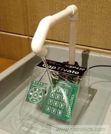 圖1:采用MSP430FR2522 MCU的面板暴露在有水的環(huán)境仍能確保零誤觸發(fā)
