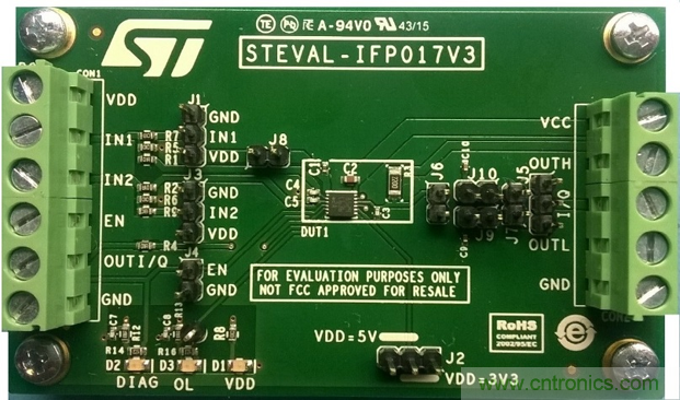 圖5:STEVAL-IFP017V3演示板,用于測試L6362A的阻容和電感負(fù)載驅(qū)動(dòng)能力