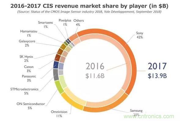 傳感器(CIS)已成為半導體產(chǎn)業(yè)的關(guān)鍵器件。這不僅是因為所涉及的技術(shù)及其帶來的市場營收,而是因為現(xiàn)在已經(jīng)無法想象智能手機、汽車甚至是房屋如果沒有攝像頭的支持會怎樣。根據(jù)Yole最新發(fā)布的《CMOS圖像傳感器產(chǎn)業(yè)現(xiàn)狀-2018版》報告,2017年CIS產(chǎn)業(yè)的市場規(guī)模達到了139億美元,預計未來5年的復合年增長率(CAGR)將達到9.4%。