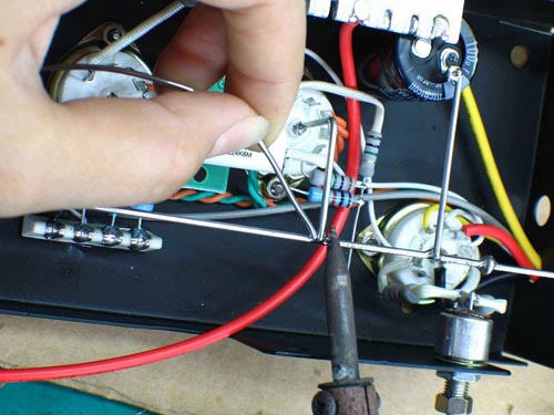 另一個方法就是前面提到的,直接使用電烙鐵熔掉焊錫,但這樣就存在不小的危險性,既要小心焊點(diǎn)沒完全被熔掉,又怕接觸的太久燒壞元件。常用的方法是在加溫的時候就用鑷子夾住元件外拉,當(dāng)溫度達(dá)到時,元件就會被拉出,但切記不要太用力了,否則管腳斷在焊錫中就麻煩了。