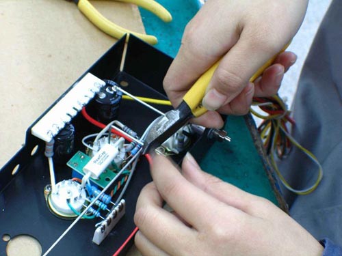 另外值得一提的是吸錫器,其對于新手來說十分實用,初次使用電烙鐵總是容易將焊錫弄得到處都是,吸錫器則可以幫你把電路板上多余的焊錫處理掉。另外,吸錫器在拆除多腳集成電路器件時十分奏效有用,它能將焊點(diǎn)全部吸掉,而對于能熟練使用烙鐵的人來說就完全沒有必要了,用烙鐵完全可以代替其功能,將焊點(diǎn)熔掉就可以很容易的將元件取出。