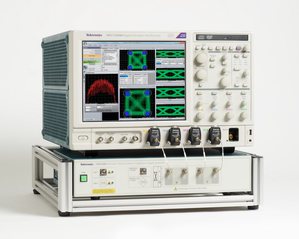 傳統(tǒng)上,光調(diào)制分析儀可與許多種示波器機型搭配使用。OM4106D是第一個與高速示波器緊密整合的光調(diào)制分析儀,這讓它的性能可以測試市場上速度最快的相干光波系統(tǒng)。DPO73304D示波器提供33GHz實時帶寬,雙通道采樣率為100 GS/s,四通道采樣率為50 GS/s。該示波器還有一個新 DataStore 公共接口,為分析任務(wù)提供2倍的從數(shù)字轉(zhuǎn)換器到實現(xiàn)OM4106D算法的 MATLAB 應(yīng)用的數(shù)據(jù)吞吐率。